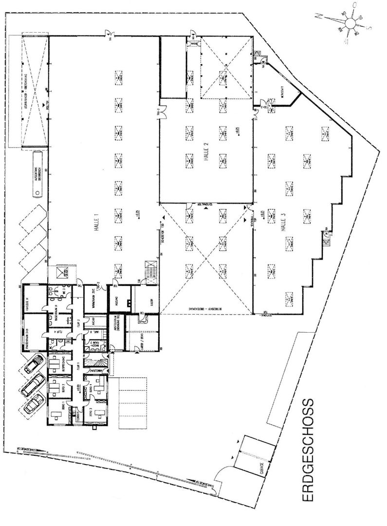 Hallenfläche mit Verwaltungsgebäude